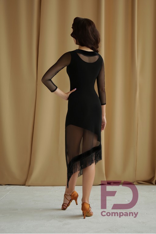 Описание товараПлатье для латины, прилегающего силуэта, рукавом длиной три четверти, горловины форма "лодочка", юбка отрезная по линии талии, крой на запах с удлиненными концами впереди. Трусики в комплекте. Изделие выполнено из трикотажа масло. Кокетки, рукава и низ платья из сетки стрейч. Обтачка горловины и обтачка низа юбки из мягкого велюра. Низ платья украшен бахромой длиной 10 см.