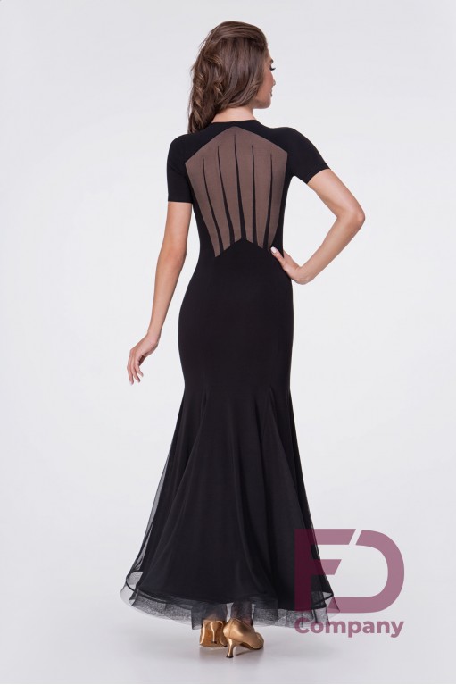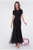 Описание товараПлатье для стандарта прилегающего силуэта, расширенное к низу, с коротким рукавом, круглой горловиной. По переду и спинке рельефные швы, юбка с вставками "годе" во всех швах, низ обработан регилином шириной 5 см. в подгиб. По переду настрочена планка с четырьмя пришитыми пуговицами, по центру спинки вставка из сетки стрейч с зашитыми вытачками, дублированная бежевым трикотажем. Изделие выполнено из трикотажа масло.