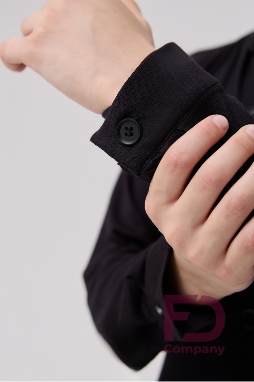 - Рукав: Длинный, одношовный, втачной, низ рукава обработан манжетом;