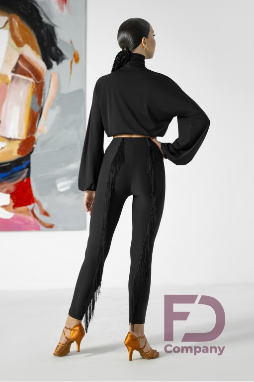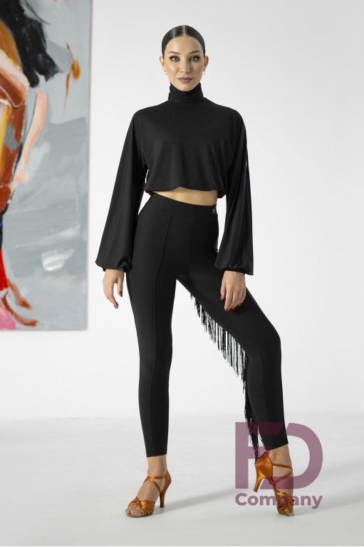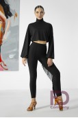 Описание товараТоп женский, с высоким горлом и широкими рукавами на манжетах для латинской программы. Топ с резинкой под грудью, шириной 2 и 3 см. Изделие выполнено из трикотажа масло.