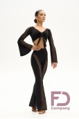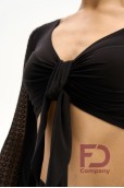 - Рукав: Длинный, расклешенный, с вставкой из гипюра кружочек;