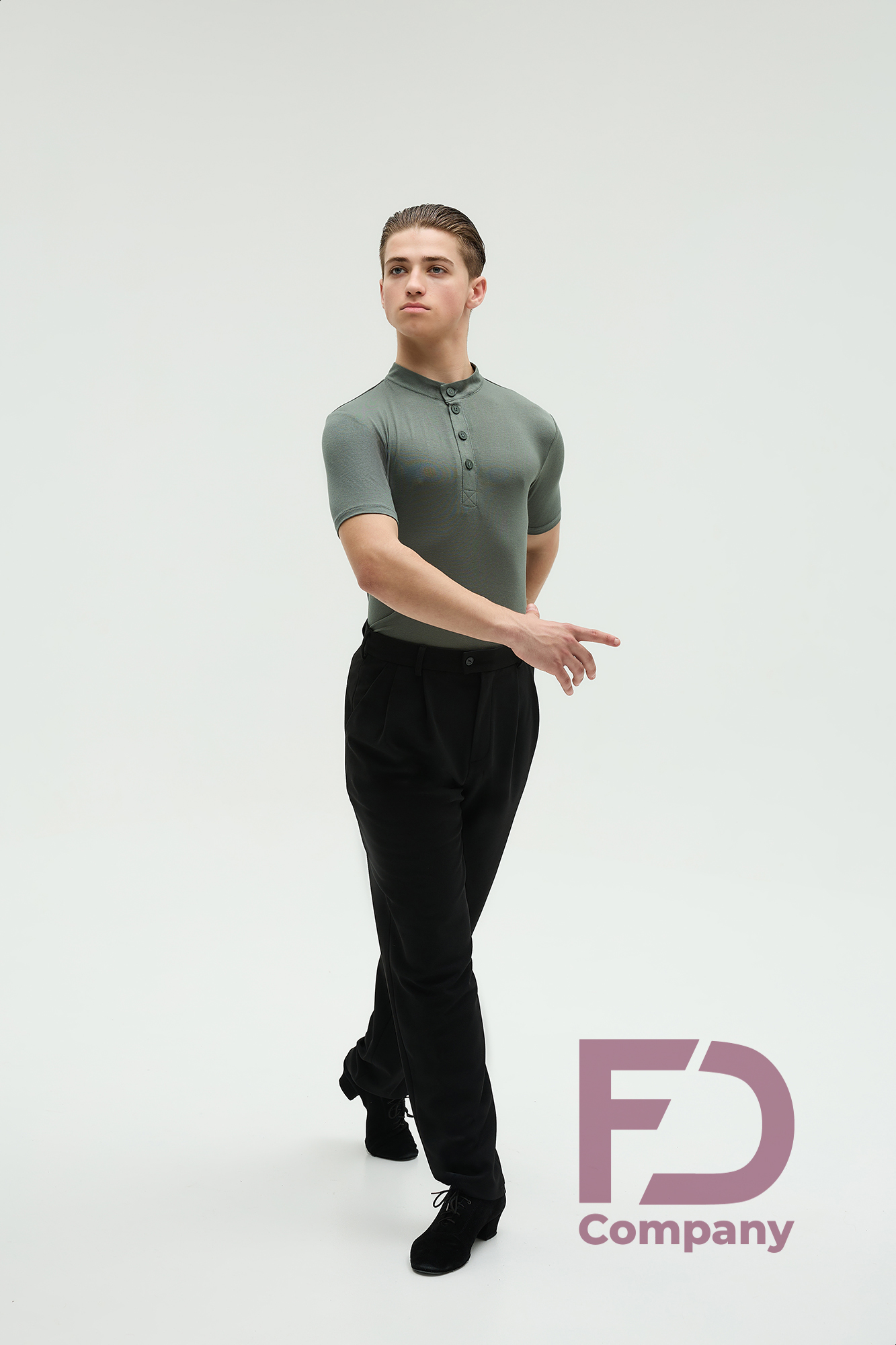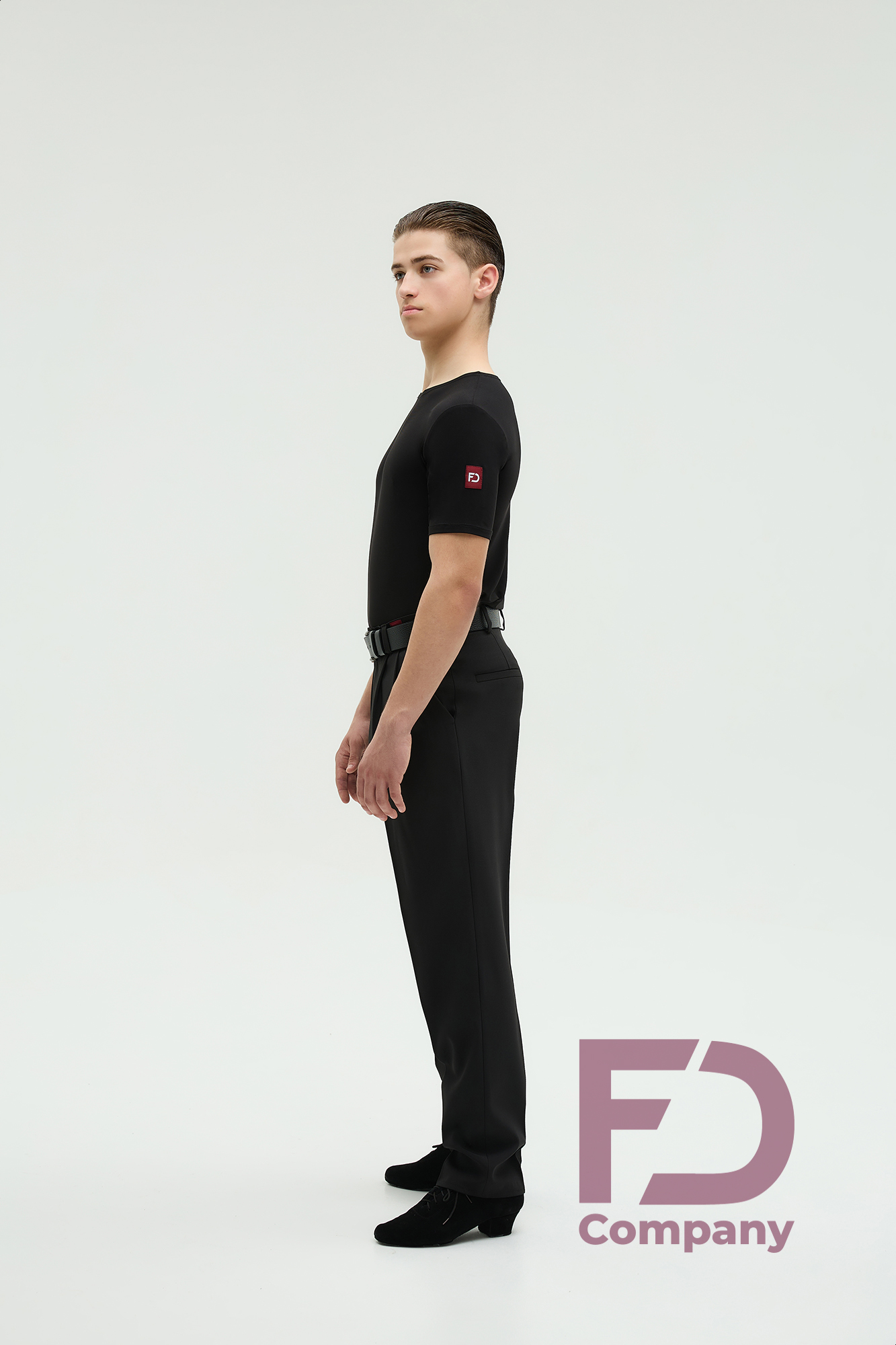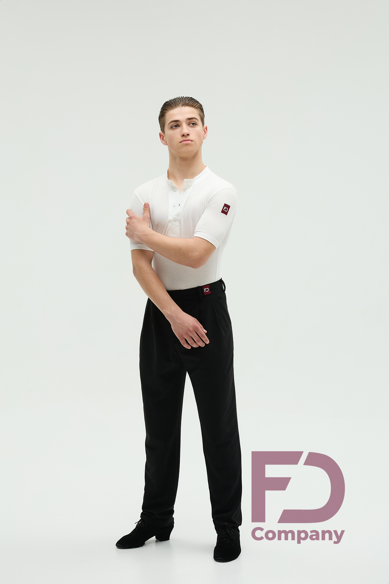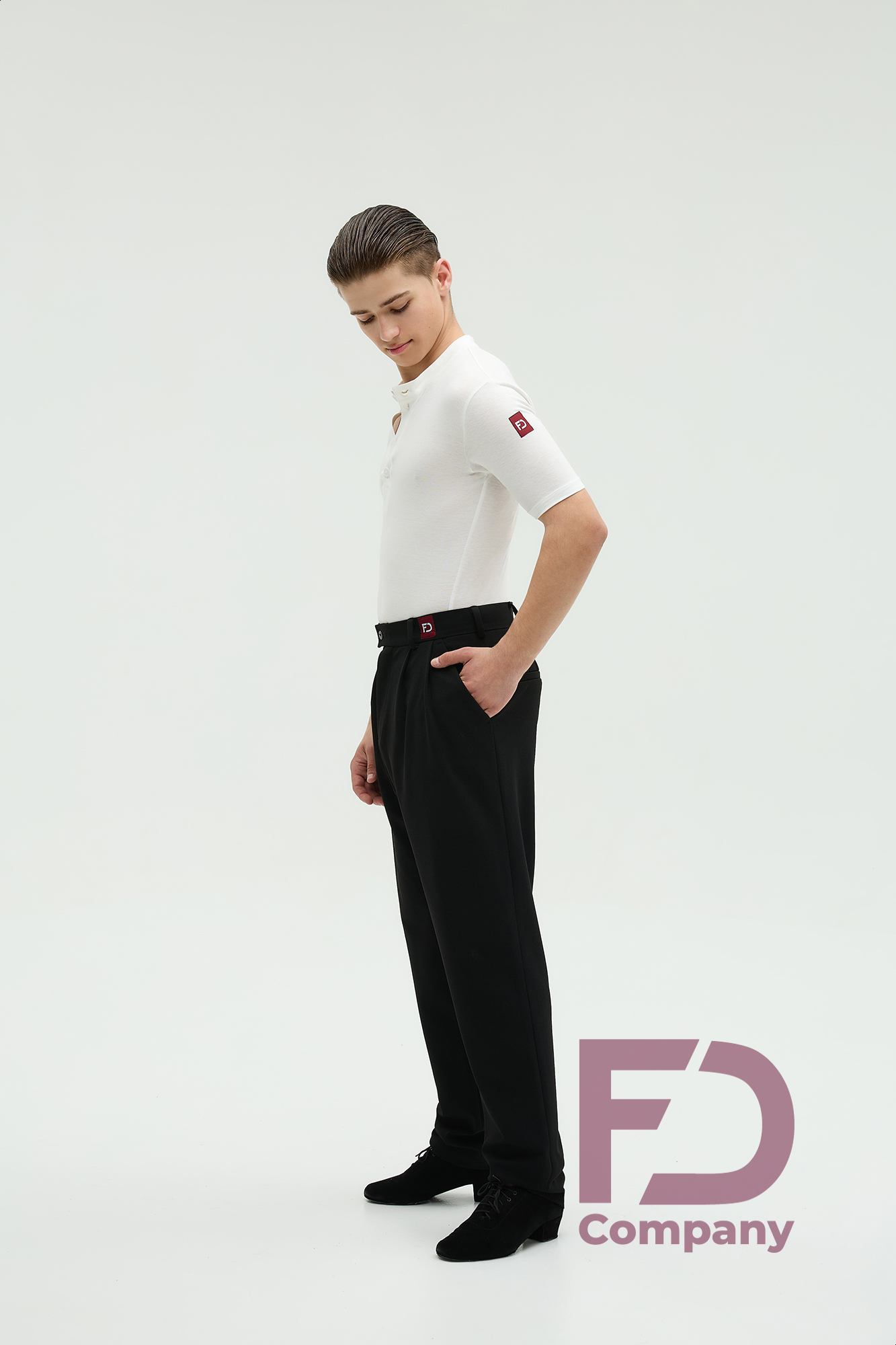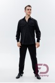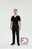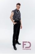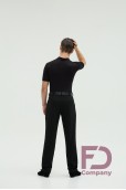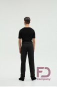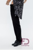 - Особливості: Штани, звужені донизу. На передніх половинках — дві складки, закладені до бокових швів. По боках — кишені. На задніх половинках розташовані виточки та кишені (кисточка обманка). По поясу — шльовки та застібка на один верхній і один внутрішній ґудзик. По передніх і задніх половинках заутюжені стрілки.;