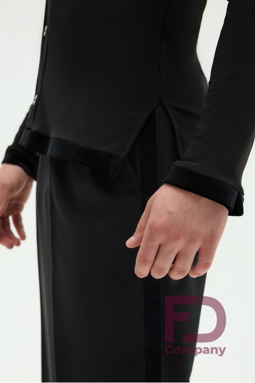 - Особливості: Штани стандартні із защипами по переду, по бокових швах лампаси та кишені, на задніх половинках виточки. Пояс перехідний з велюру на гачках. Стрілки запрасовані.;