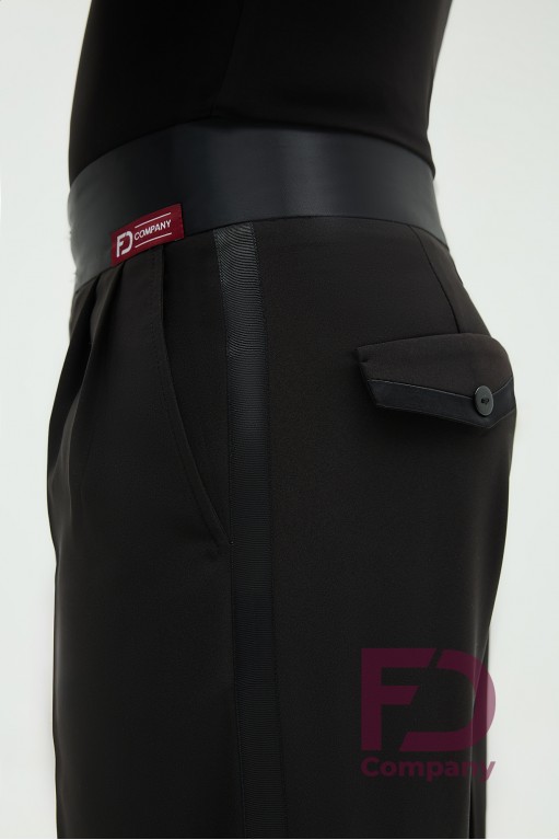 - Особливості: Штани стандартні, по переду защипи, по бокових швах кишені та лампаси, на задніх половинках клапан на гудзику, пояс атласний широкий, центральна застібка на гудзиках.;
