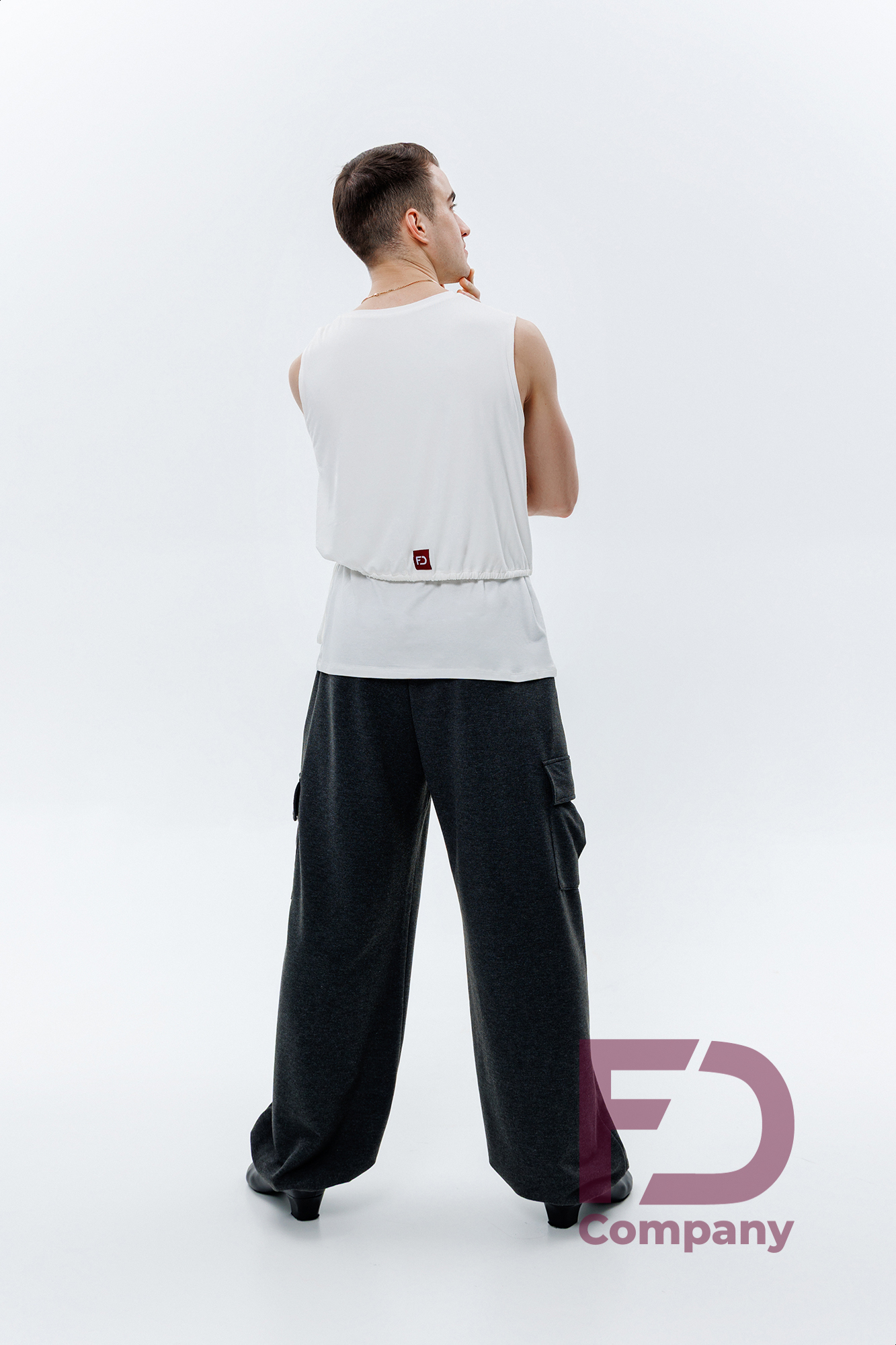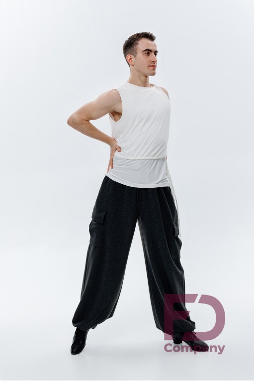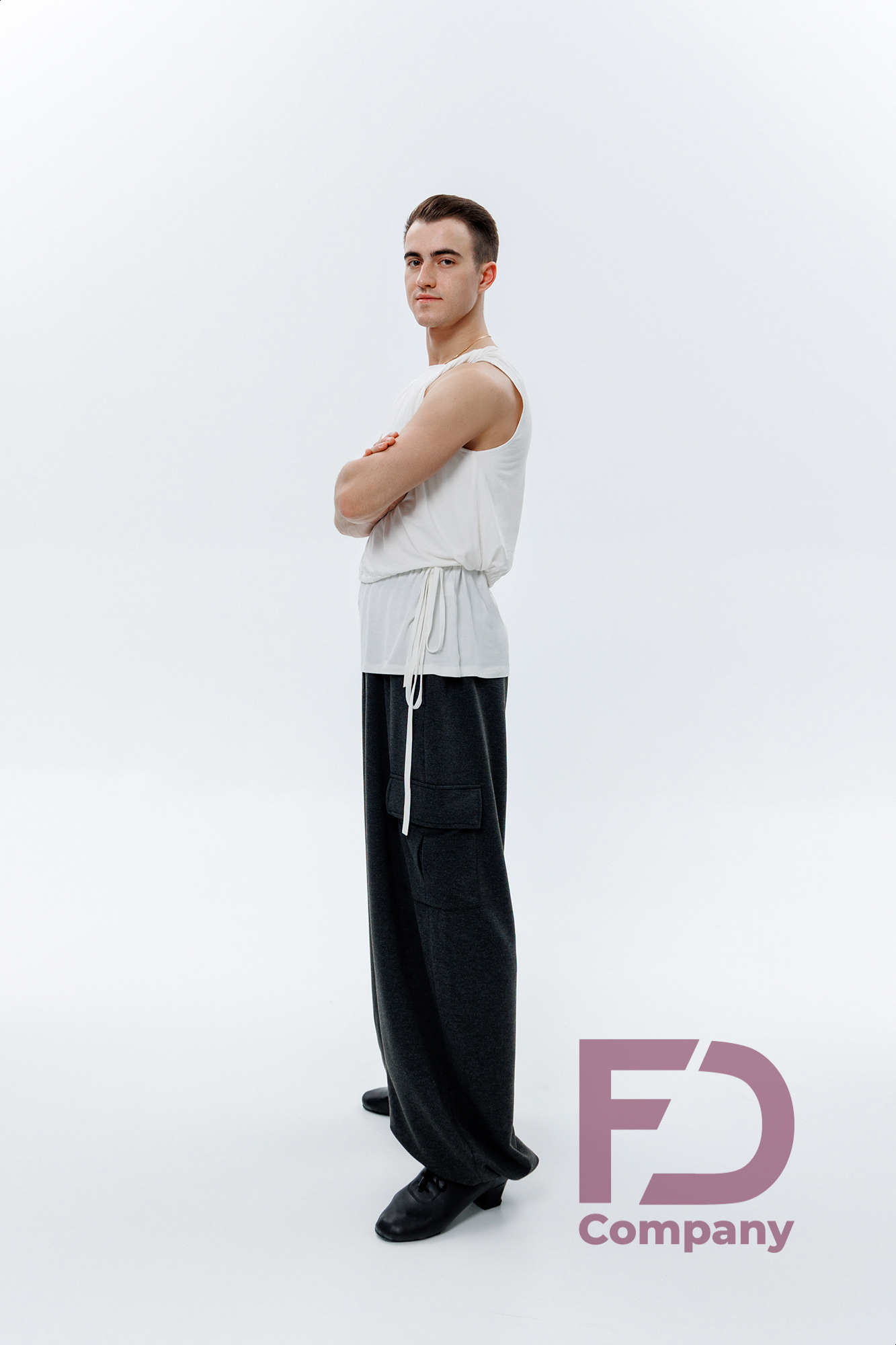 - Особливості: Штани широкого крою з притачним поясом на резинці шириною 5 см та регульованим шнурком. Кишені у бокових швах та накладні кишені з клапанами по боках. Ширина низу регулюється резинкою з затяжками.;