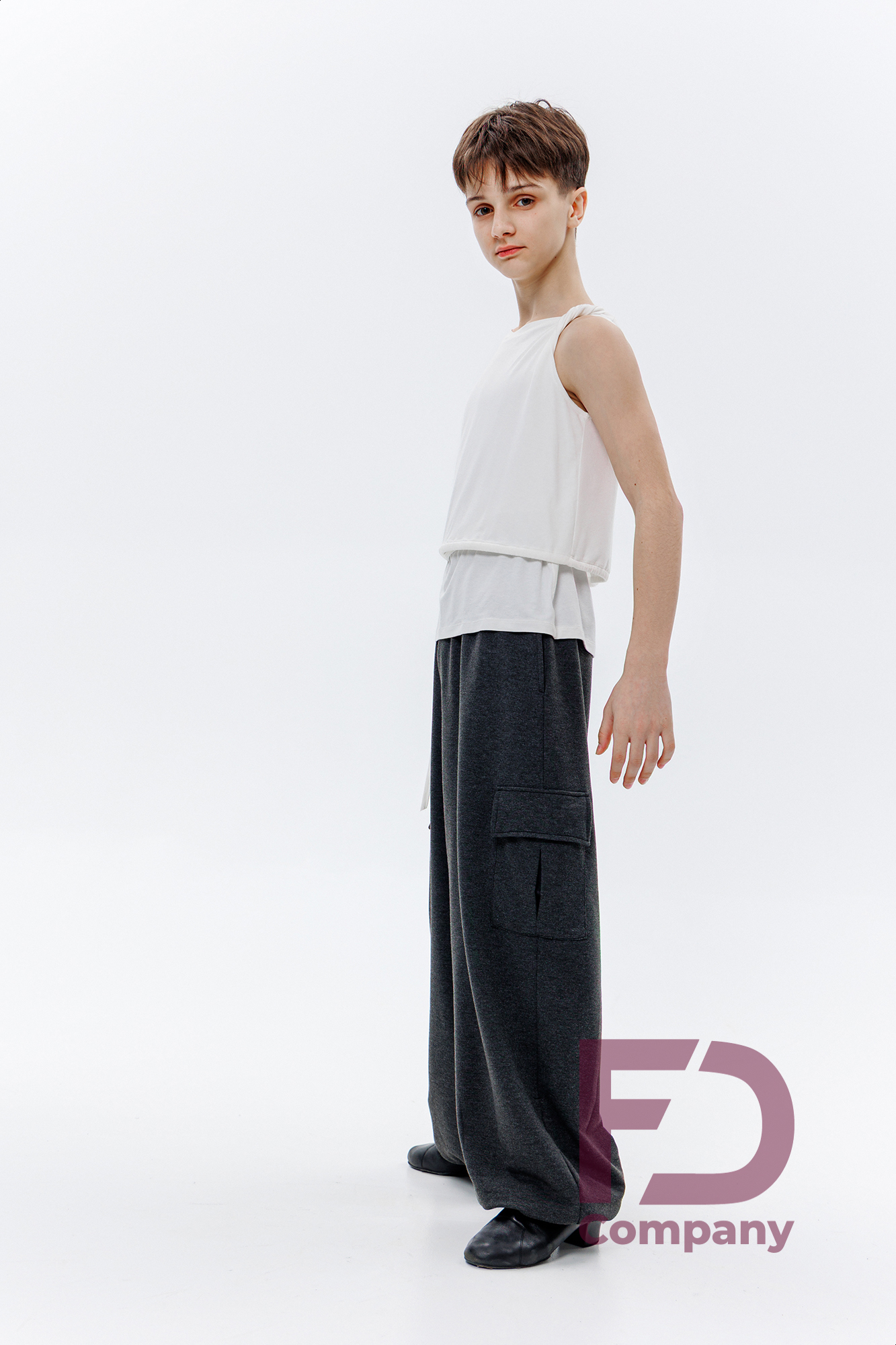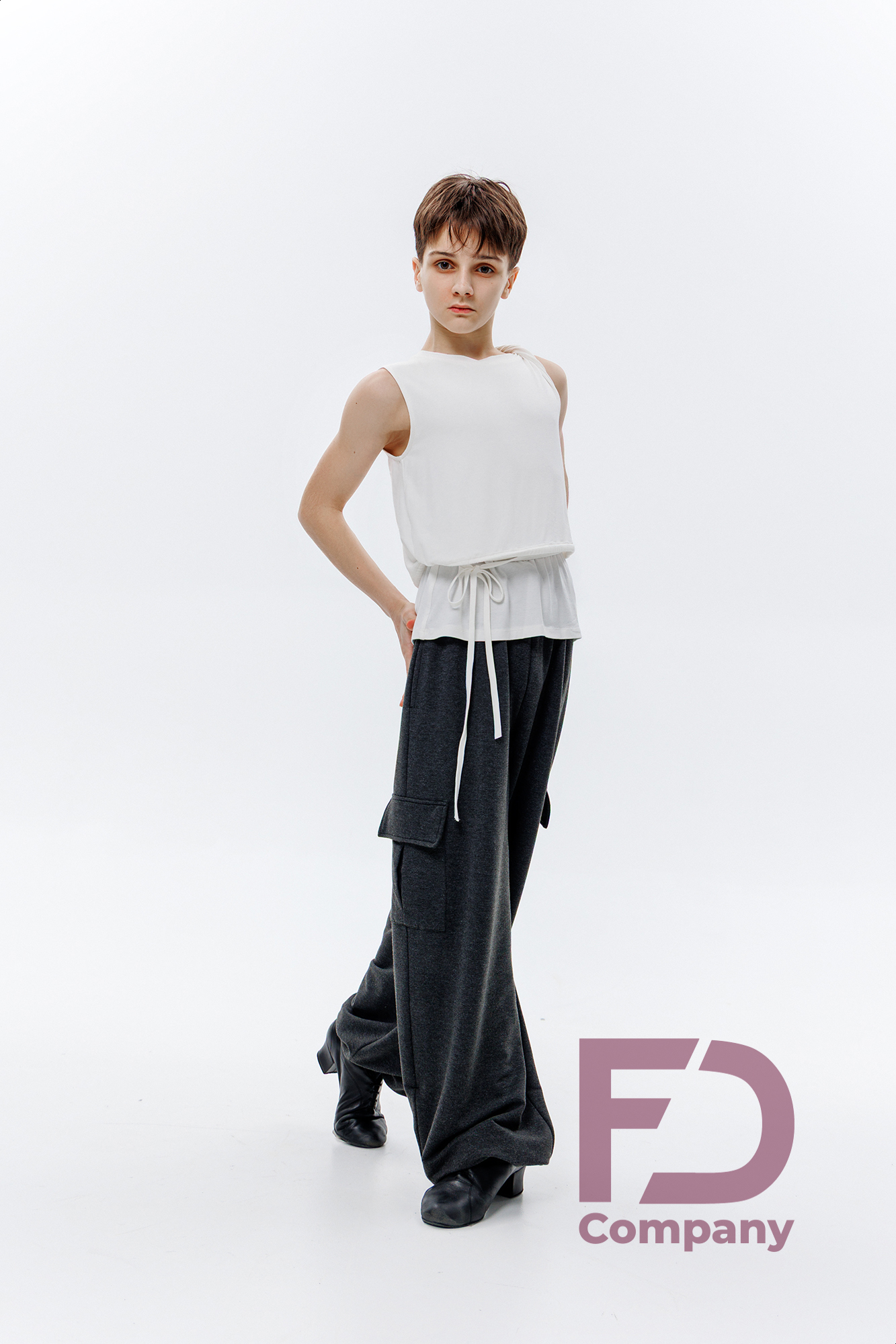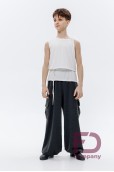 - Особливості: Штани широкого крою з притачним поясом на резинці шириною 5 см та регульованим шнурком. Кишені у бокових швах та накладні кишені з клапанами по боках. Ширина низу регулюється резинкою з затяжками.;