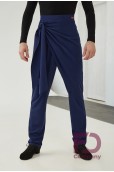 Опис товаруШтани чоловічі для латиноамериканських танців, з високою посадкою на поясі, з гумкою шириною 4-5 см., завужені до низу. За переду оброблені склади та відлітна декоративна деталь переходить в пояс - зав'язку. Виріб виконаний з крепдайвінга.