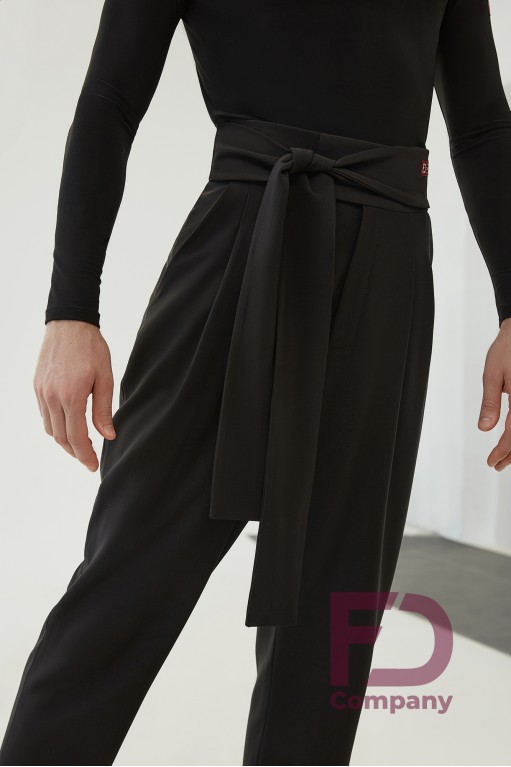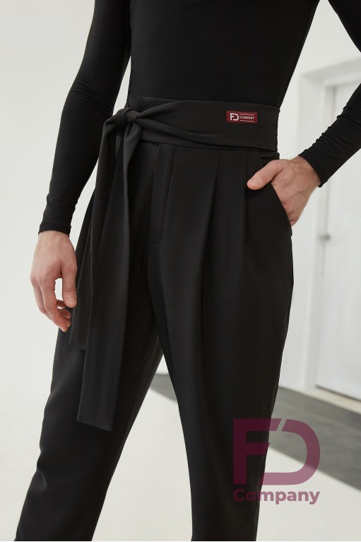 Опис товаруШтани чоловічі для латиноамериканських танців, з високою посадкою, з кишенями, завужені до низу. Пояс широкий, застібається на гачки, доповнений поясом - зав'язкою. За переду оброблені склади. Виріб виконаний з щільного габардину.