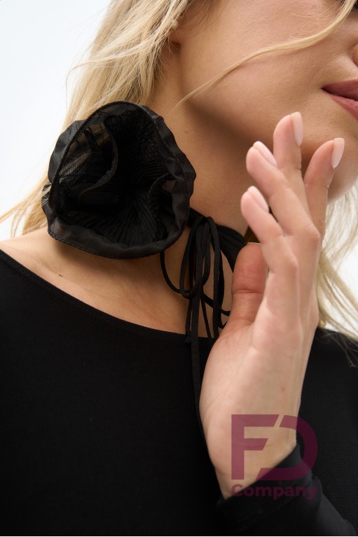 Опис товаруЧокер — вид прикрас, короткий виріб, що щільно прилягає до шиї. Виконано з подвійної рюші гофре, трикотажу масло та додаткової фурнітури.