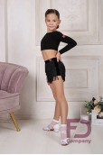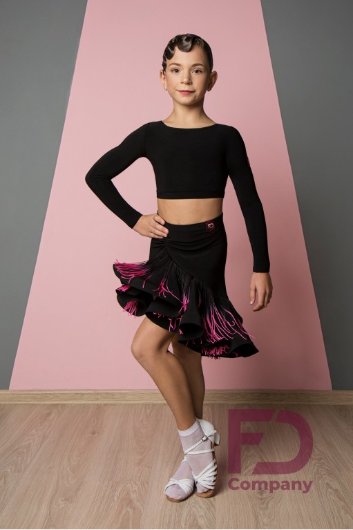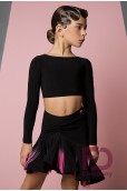 Опис товаруТоп тренувальний для латиноамериканських танців з довгим рукавом, горловина у формі човника, обтачка по низу виробу з гумкою шириною 2-3 см. Виріб виконаний з трикотажу масло, по горловині вшита гумка шириною 0.5 см.