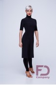 Опис товаруЖіночий гольф - плаття, підлозі прилеглого силуету, коротким рукавом, коміром - висока стійка, по переду виконані рельєфи з розрізами. Виріб виконаний з трикотажу масло, на рукавах лампас з велюру.