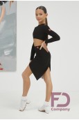 Опис товаруСпідниця для латини двошарова з драпіруванням з правого боку, прикрашена бахромою. Спідниця з притачним поясом, гумкою шириною 4 см., з асиметричним низом. Виріб виконаний з трикотажу олії та сітки леопард.