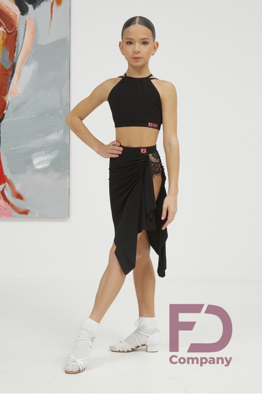Опис товаруСпідниця для латини на поясі з гумкою шириною 4 см, з драпіруванням по боці переда та спинки. У лівому боці оброблено вставку з гіпюру "війки" дубльованого трикотажем бежевого кольору. Спідниця з трусиками, виготовлена з трикотажу масло.
