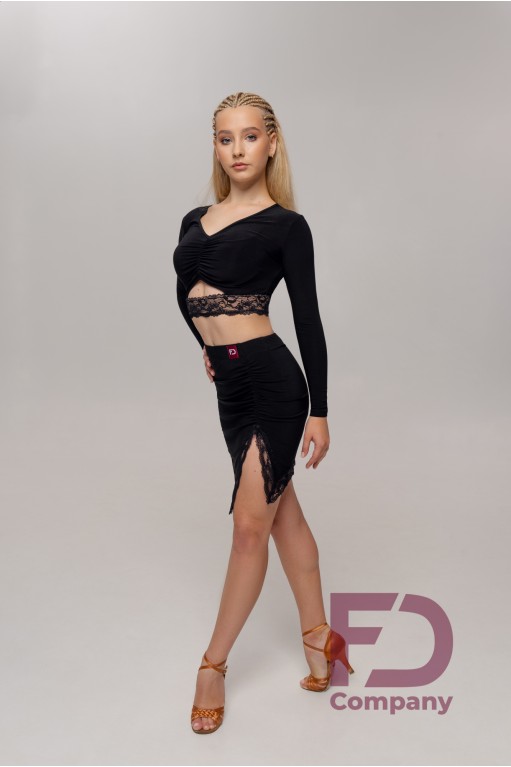 - Особливості: Спідниця з розрізом і драпіруванням по переду, з асиметричним низом, прикрашеним мереживом 6 см. Верхній зріз оброблений гумкою шириною 3-4 см. в підгин. Трусики вшиті.;
