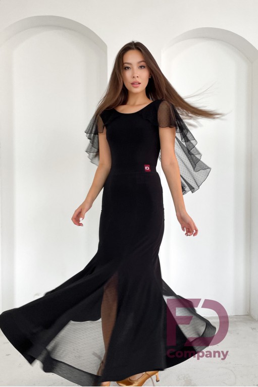 Опис товаруСпідниця для стандарту з п'яти клинів з вставками з сітки флок, пояс притачной з гумкою шириною 4 см. Низ оброблений регіліном шириною 5 см в підгин. Виріб виконаний з трикотажу масло.