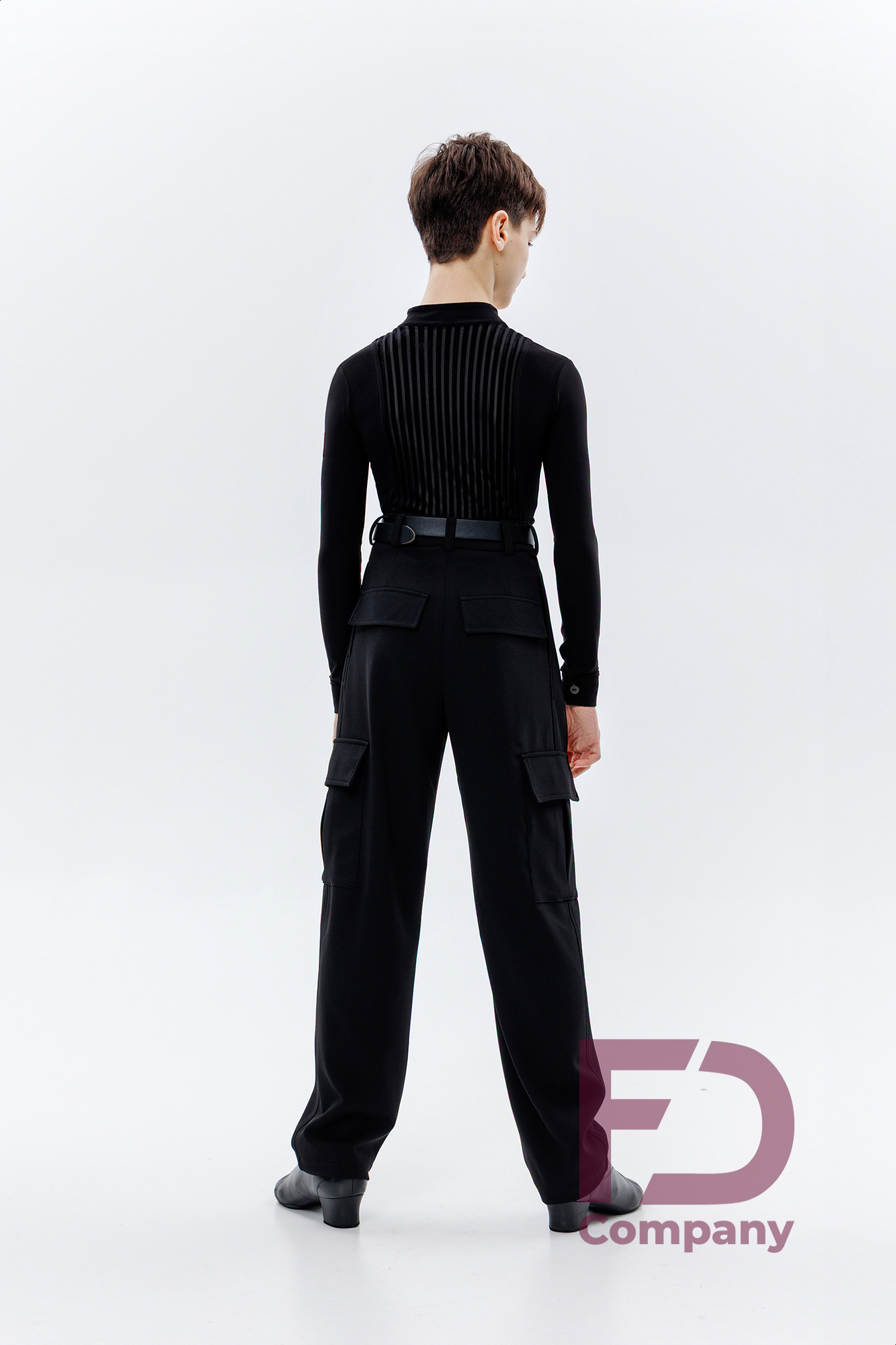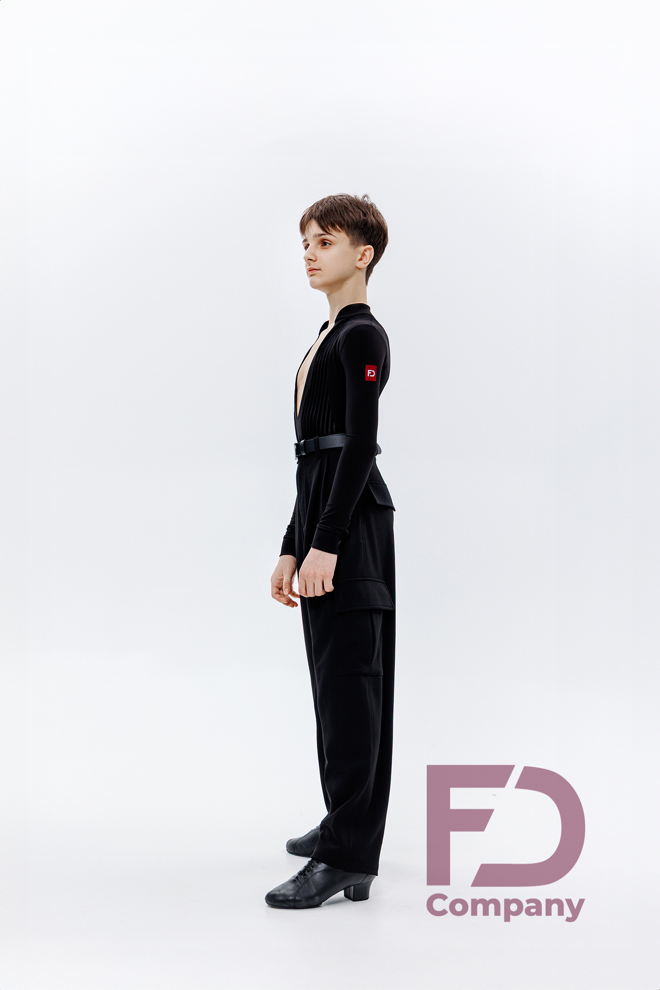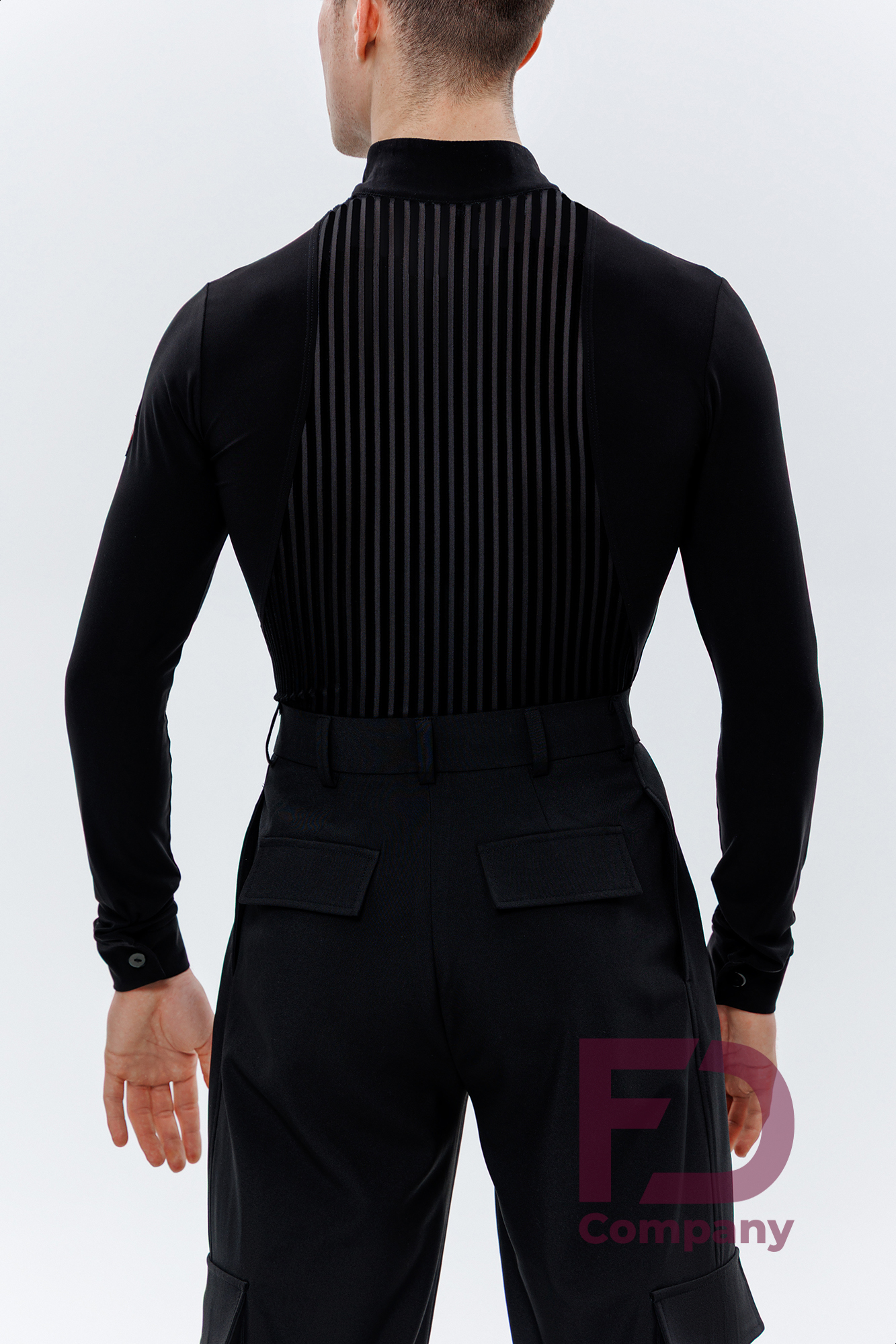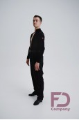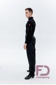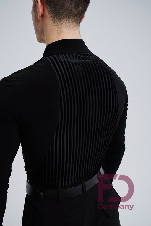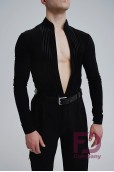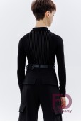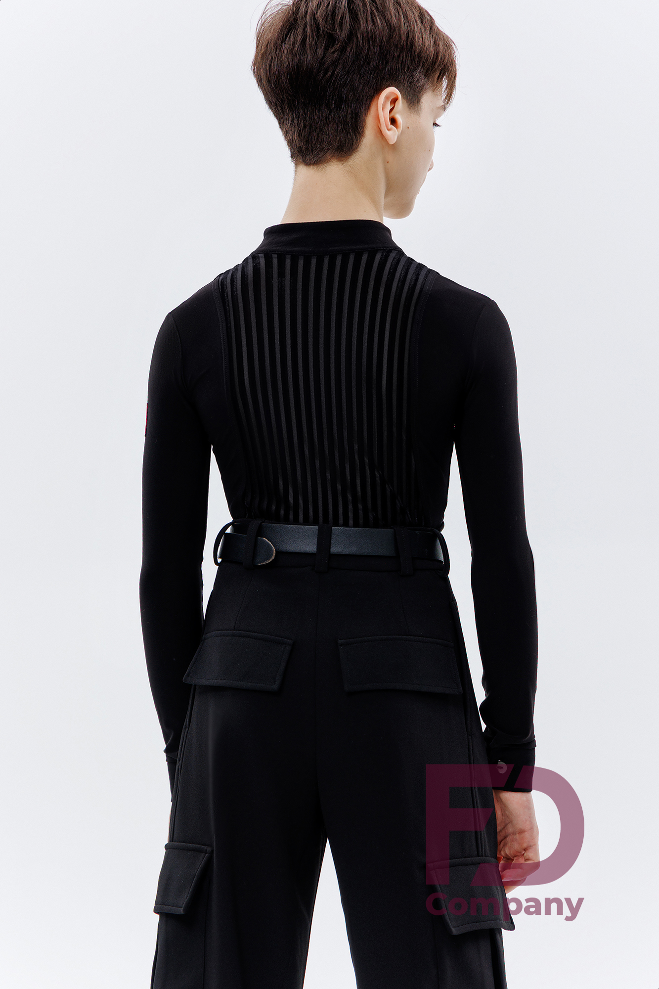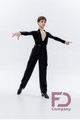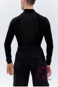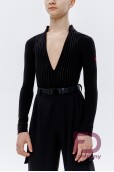 - Особливості: Комбідрес зі стрейч трикотажу та велюрової сітки в смужку. Комір — стійка, V-подібний виріз горловини, без центральної застібки. Рукав довгий, втачний, одношовний, з притачним манжетом, що застібається на петлю і ґудзик.;
