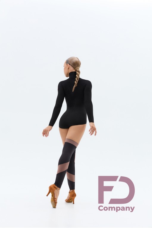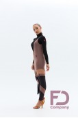 - Особливості: Купальник прилеглого силуету з довгими рукавами та коміром-стійкою, виконаний зі стрейч трикотажу. Застібки: потайна блискавка на спинці та кнопки на трусиках.
