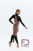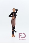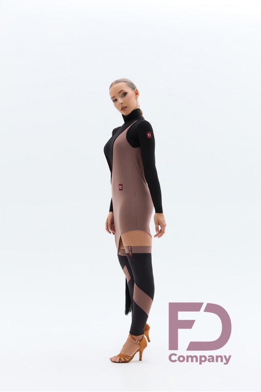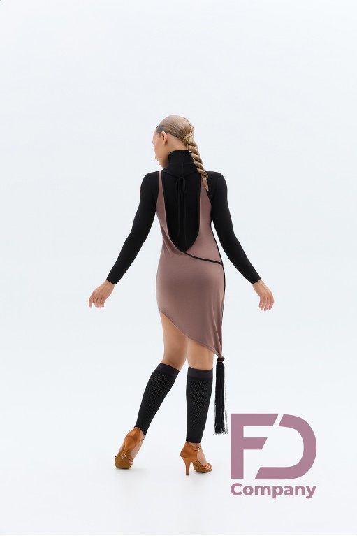 Туніка вільного силуету, без рукавів, виконана зі стрейч трикотажу. Краї оброблені бейкою з оздоблювальної тканини. Низ зав'язаний на вузол, прикрашений бахромою довжиною 20 і 30 см;