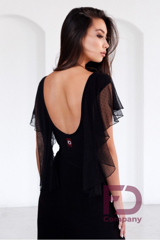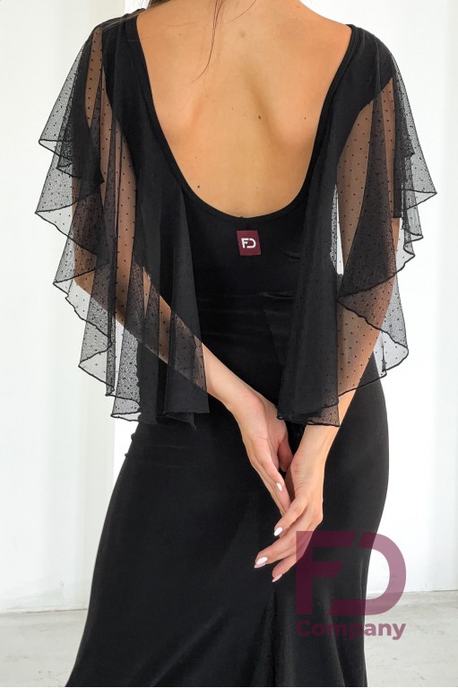 Опис товаруКупальник для стандарту, без рукавів, з круглим вирізом горловини по переду і відкритою спинкою. Виріб на підкладці, зі знімними чашками. По лінії вирізу горловини втачать пелерина з сітки флок. Купальник з застібкою на трусиках. Виріб виконаний з трикотажу масло.