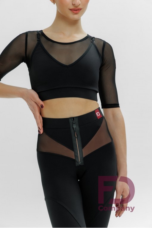 - Особливості: Лосини з трикотажу OYSHO з фігурними вставками з м'якої сітки на передній частині, спинці та боках. По центру переду — декоративна блискавка. Пояс на резинці шириною 4 см.;