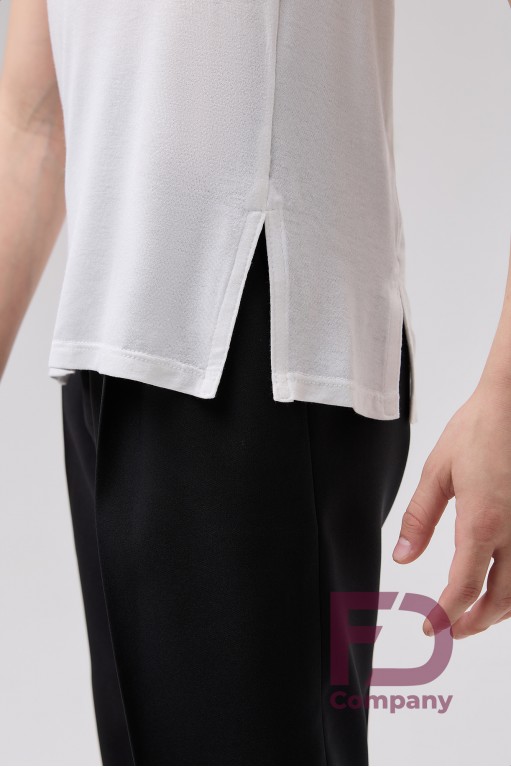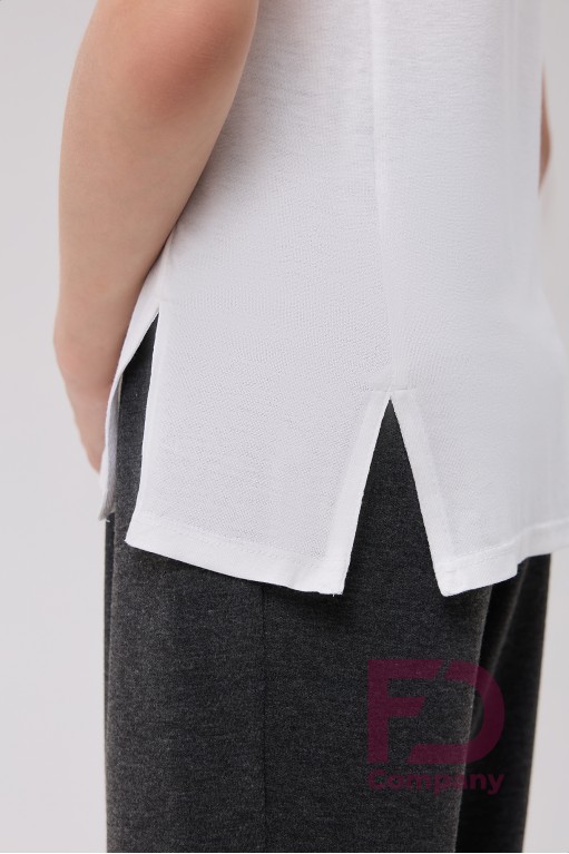- Особливості: Майка вільного силуету, пройму та горловина оброблені бейкою. По низу виробу чотири розрізи оброблені кіперною стрічкою.;