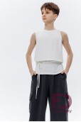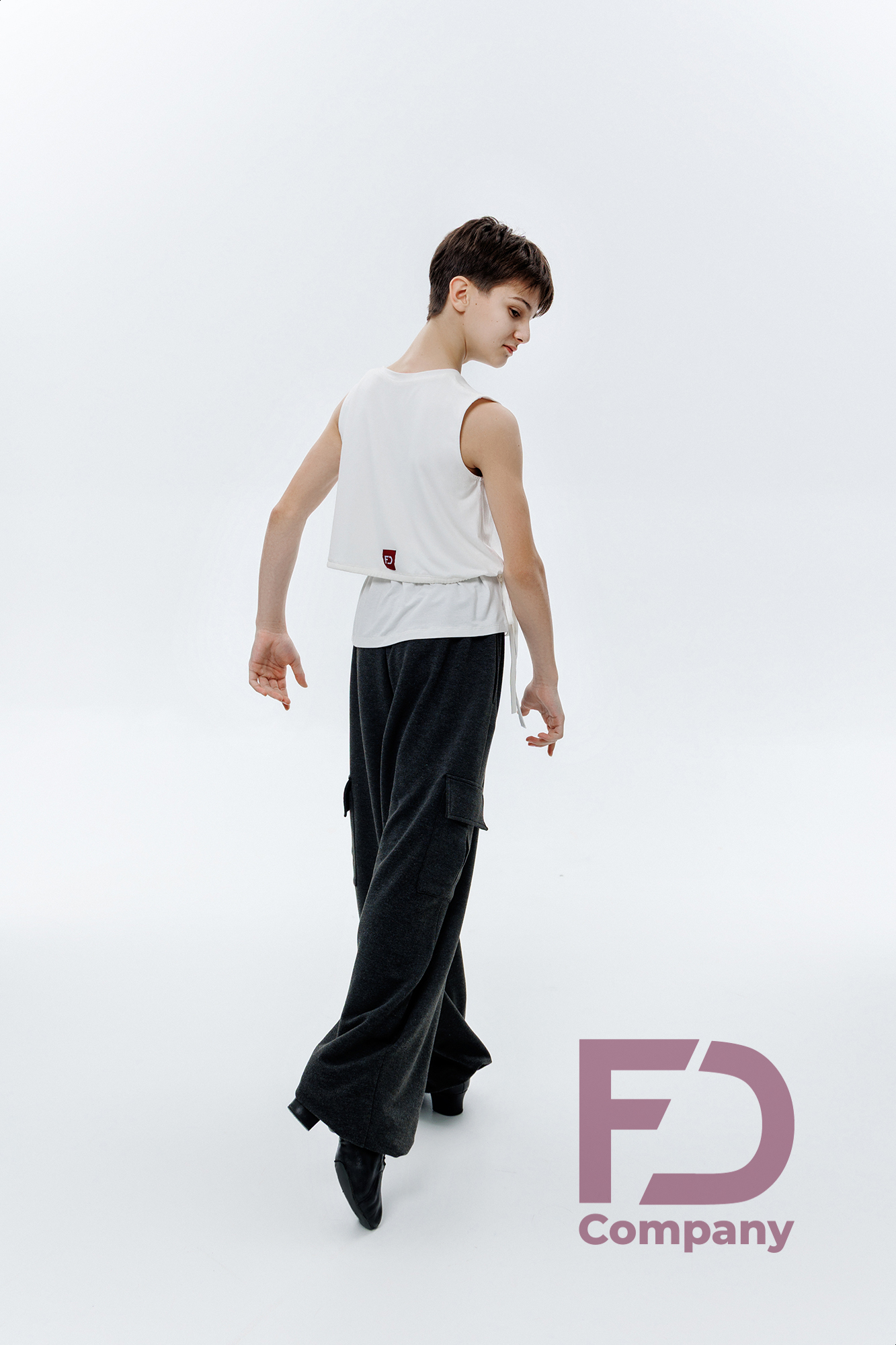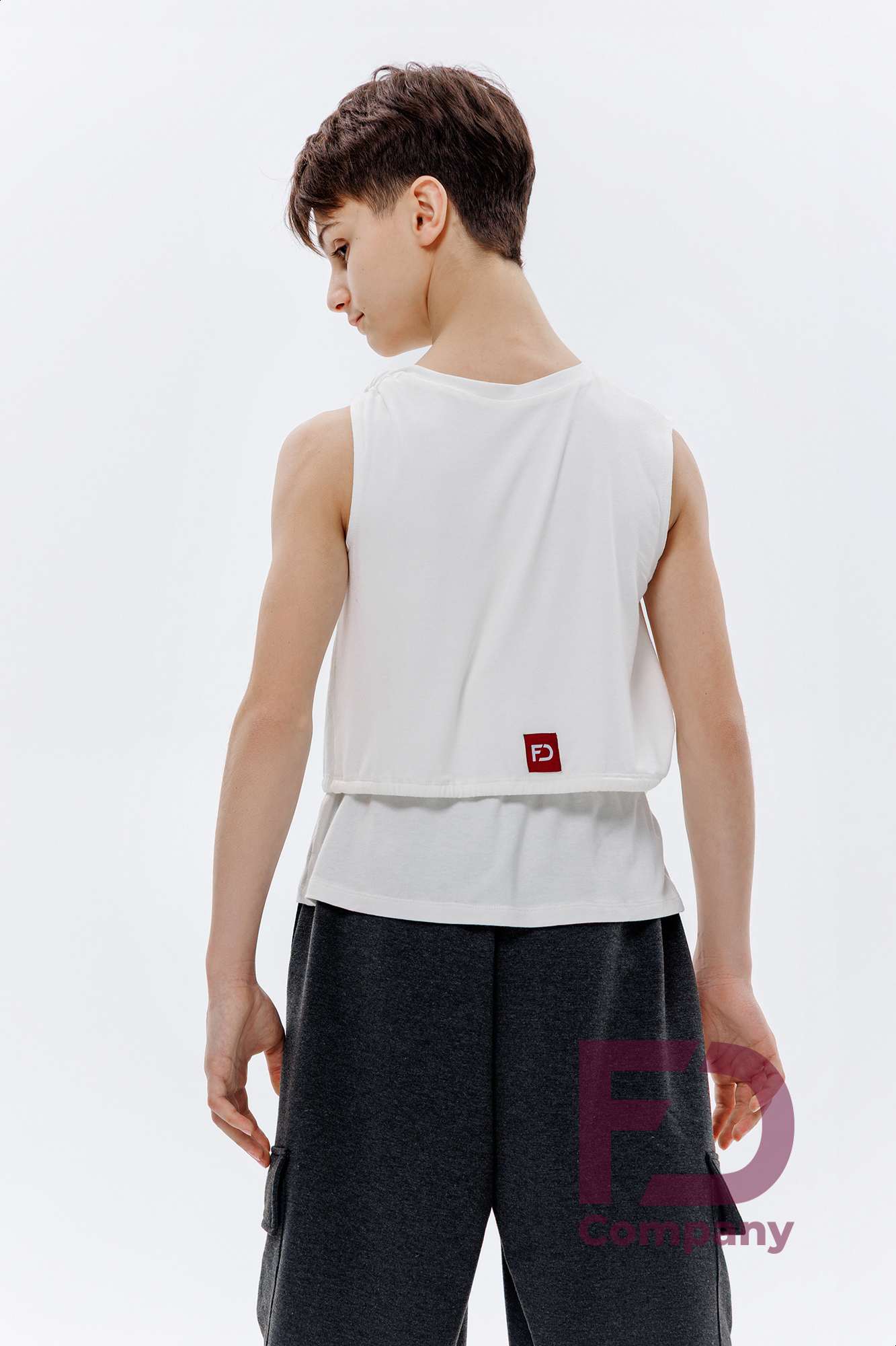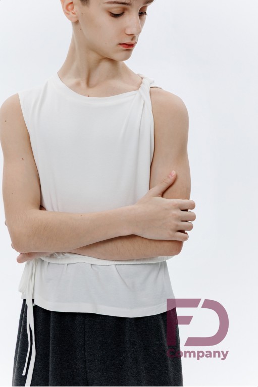 - Особливості: Двошарова майка з перекрутом на одному плечі. По низу верхнього шару — куліса з регулюванням об’єму.;