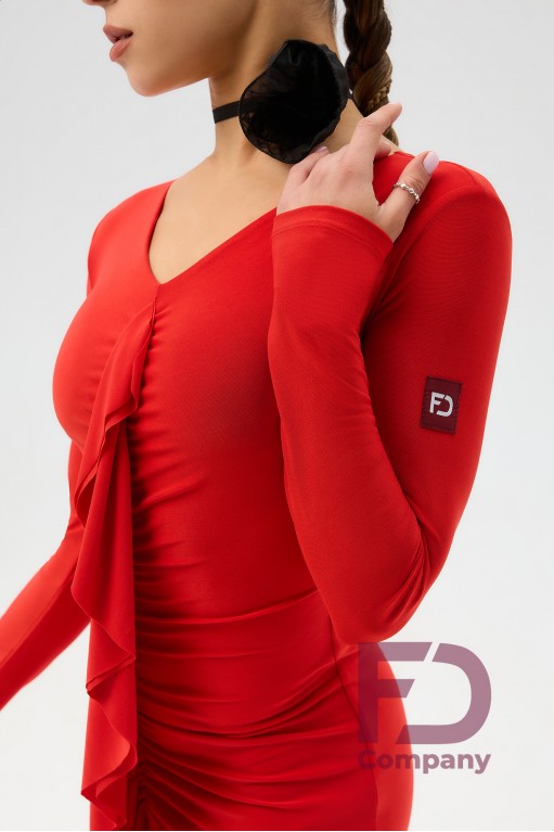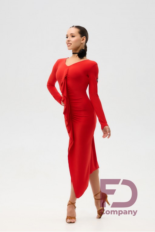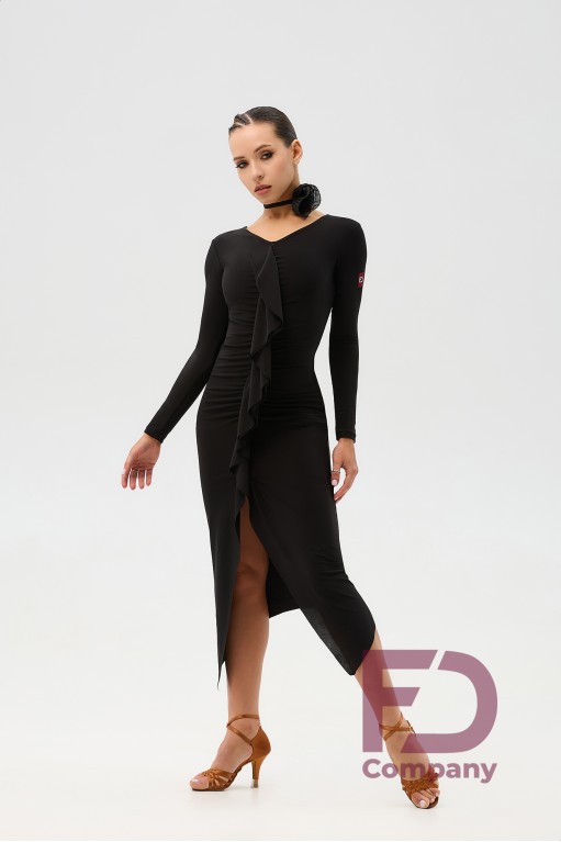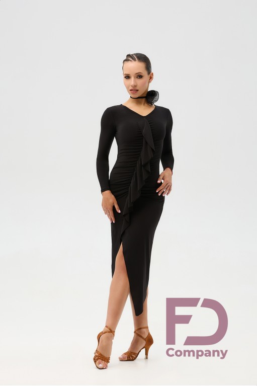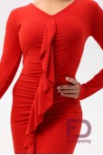- Особливості: Сукня приталеного силуету на основі купальника з високим розрізом спереду. Перед прикрашений драпіруванням з воланом. Купальник застібається на кнопки знизу.;