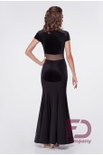 Опис товаруСукня для стандарту прилеглого силуету, розширене до низу, коротким рукавом, v - образної горловиною з обтачкой. Спідниця з шести клинів, низ оброблений регіліном шириною 5 см. в підгин. Ліф сукні виконаний з велюру з вставками з сітки, дубльованої бежевим трикотажем. Спідниця з трикотажу масло.