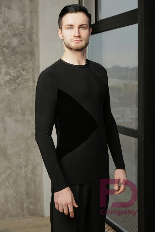 Опис товаруСорочка чоловіча універсальна для латини та стандарту, з довгим рукавом і круглою горловиною з обтачкою. Виріб виконаний з трикотажу масло з вставками з м'якого велюру по переду.