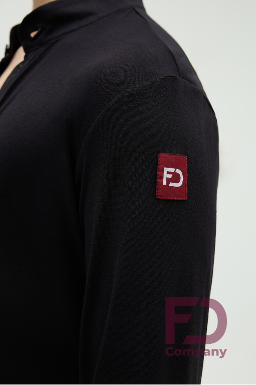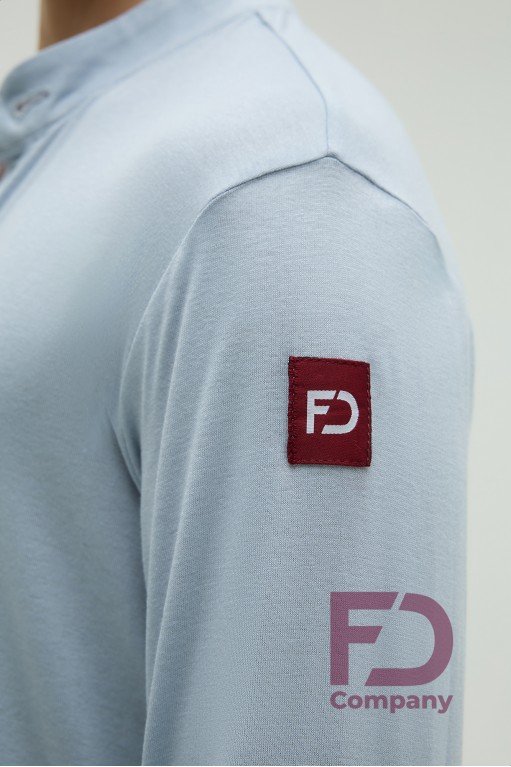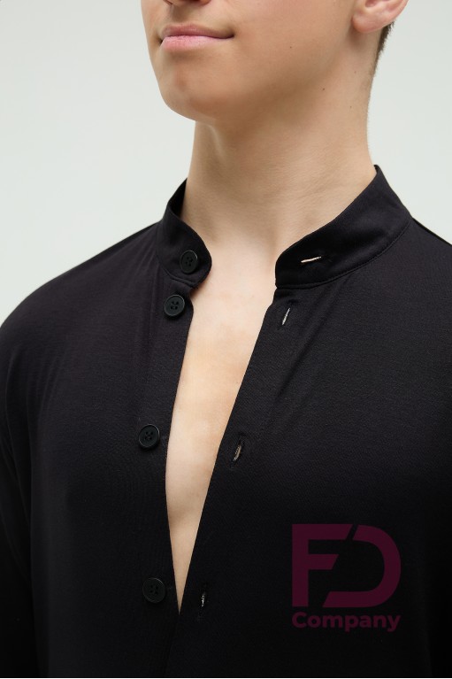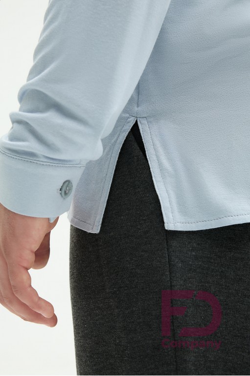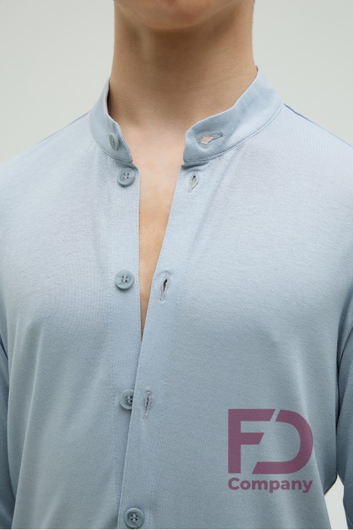 - Особливості: Сорочка звуженого силуету. Полиця з цільнокроєною планкою, центральною застібкою на гудзики. У бічних швах розрізи, оброблені кіперною стрічкою.;