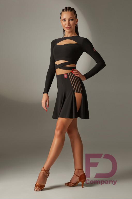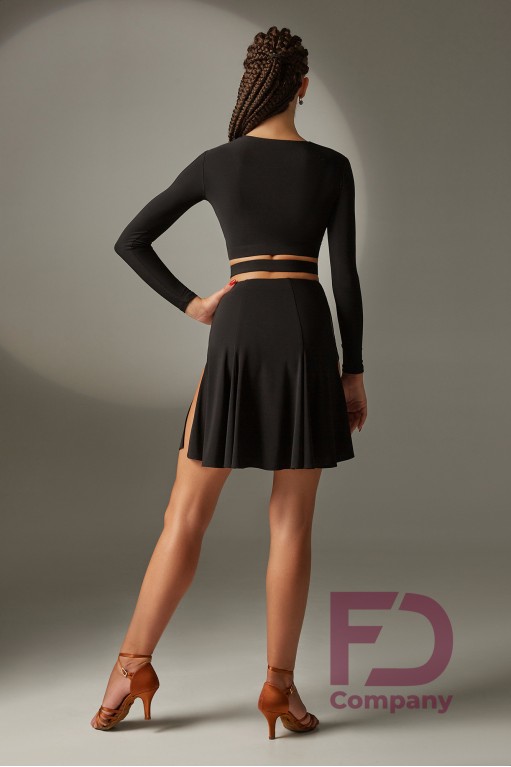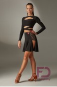 Опис товаруТоп тренувальний для латини з довгими рукавами, круглим вирізом горловини та оригінальним вирізом по переду. Топ з декоративним поясом, з гумкою шириною 2 і 3 см. Виріб виконаний із трикотажу олія.