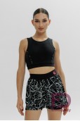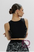 - Особливості: Топ прилеглого силуету з трикотажу OYSHO. Перед та спинка з круглою горловиною. По рельєфах переду та спинки — кантик з принтованого софта. Пояс на резинці шириною 4 см.;