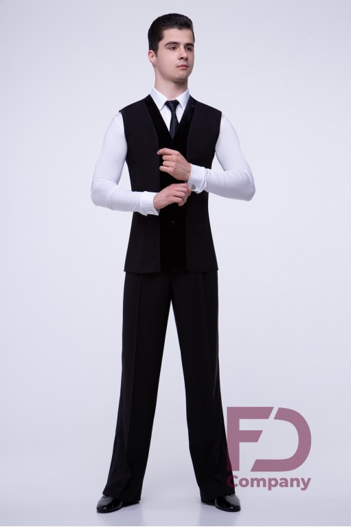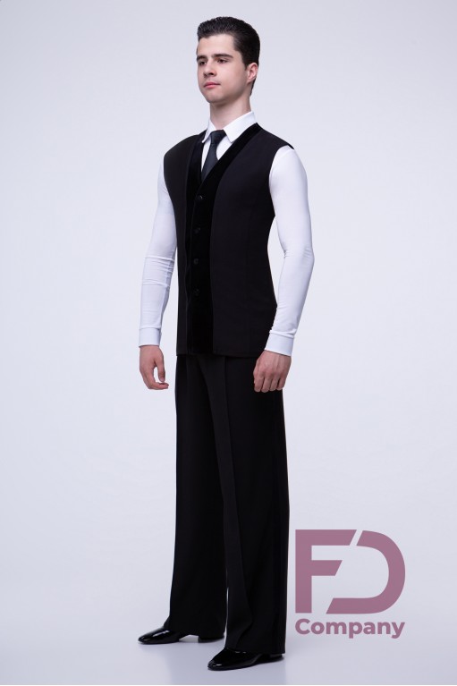 Опис товаруЖилет чоловічий, прилеглого силуету, довжиною до середини стегна, спинка і полички з рельєфами, без кишень. Застібка центральна на чотири обмітають петлі і гудзики. Виріб без підкладки, виконано з тонкого габардину, обробка з велюру.